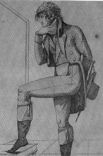 En toda la década de 1820 y los primeros años de la década 1830 se generalizaron unos pantalones tan ceñidos como las mayas de lycra (y no lo hubiese creído nunca de no haber visto un daguerrotipo, es decir, una fotografía primitiva de esos tiempos); como defensa debo decir que con botas altas la cosa no era tan desagradable, tanto como con el calzado masculino de ese período que dejaba a la vista el empeine.